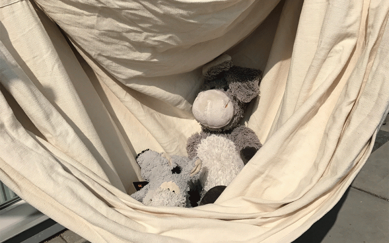 Cool, Frauchen hat für uns alle auf der IBO was richtig schickes gekauft! Seht mal, wie entspannt Düsi und ich im Hängesack liegen und unser Leben genießen!