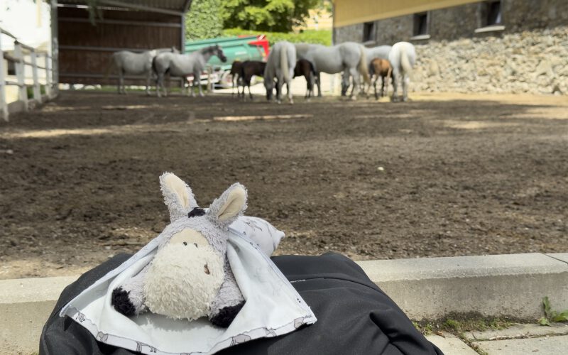 Sind die nicht süß? Ich hab mit Herrchen und Frauchen die Lipizzaner aus Wien in ihrer Sommerfrische besucht. Da hat’s noch ganz kleine mit dabei, aber die sind gar nicht braun! Die haben‘s richtig schön hier…