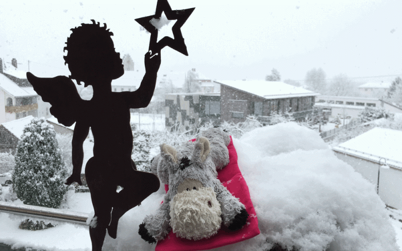 Heute morgen hab ich gleich nach dem Ausschlafen aus dem Fenster geschaut und fast meinen Augen nicht getraut – wir haben weisse Weihnachten!!! Hab mir